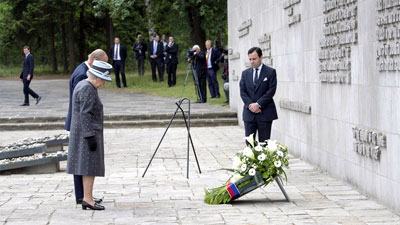 La regina Elisabetta visita il campo di concentramento Bergen-Belsen