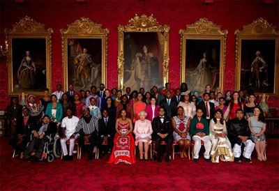 La Regina Elisabetta ha tenuto un ricevimento a Buckingham Palace a Londra per riconoscere il lavoro svolto da alcuni ragazzi provenienti da tutto il Commonwealth. In questa cerimonia alcuni giovani di età compresa tra i 18 e 29 anni sono stati premiati per il loro contributo positivo alla loro società da Sua Maestà la Regina.