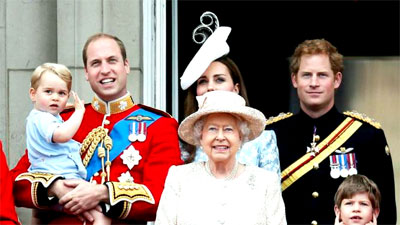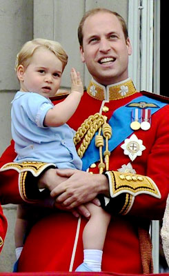 In braccio a suo padre William, il principe George ha salutato i sudditi dal balcone di Buckingham Palace e ha visto il passaggio della pattuglia acrobatica delle "Red Arrows", ultimo atto della tradizionale parata "Trooping the Colour" che celebra il compleanno uff