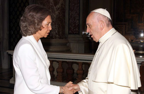 La regina emerita di Spagna Sofia, che aveva una vera e propria ammirazione per Madre Teresa di Calcutta, si è recata in piazza San Pietro per partecipare alla cerimonia della canonizzazione della suora albanese fondatrice delle Missionarie della Carità.Presentandosi davanti al Sommo Pontefice con un abito bianco, un privilegio permesso solo alle