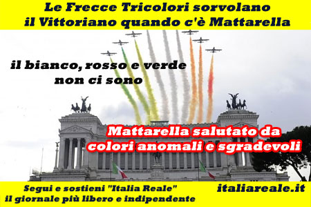 Mattarella salutato dalle Frecce Tricolori ma i colori delle scie non sono quelli della bandiera italiana