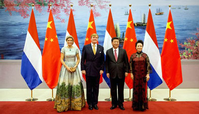 Il Re Guglielmo Alessandro e la Regina Maxima dei Paesi Bassi sono in Cina per una visita di stato di 5 giorni.Lo scopo principale di questa visita mira a rafforzare i legami economici tra i due paesi, e una numerosa delegazione commerciale di imprenditori olandesi accompagnano la coppia reale.