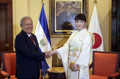 La principessa Mako del Giappone, figlia del principe Akishino e della principessa Kiko del Giappone, è in visita in El Salvador nel quadro dell'80° anniversario delle relazioni diplomatiche tra i due Paesi.La principessa ha incontrato il presidente Sanchez Ceren e ha reso omaggio alla tomba all'arcivescovo Romero, difensore dei diritti um