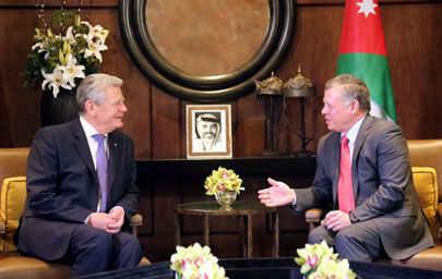 Sua Maestà il Re Abdullah II di Giordania e la regina Rania hanno accolto il presidente della Germania, il signor Joachim Gauck, e la sua compagna, la signora Daniela Schadt, ad Al-Husseiniya Palace di Amman, in Giordania.Il presidente Gauck è in visita ufficiale di 2 giorni in Giord