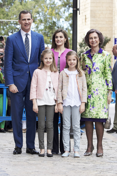 Il Re Felipe VI di Spagna, la Regina Letizia e le loro due figlie, la principessa ereditaria Leonor e la principessa Sofia, raggiunti dalla regina madre Sofia, hanno assistito alla tradizionale Santa Messa di Pasqua presso la cattedrale di Palma de Mallorca.Al loro arrivo i reali hanno posato per le fotografie, ed ha