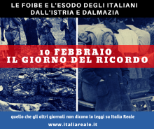 10 febbraio : Il Giorno per ricordare le Foibe e l'Esodo degli italiani, dimenticati per troppi anni